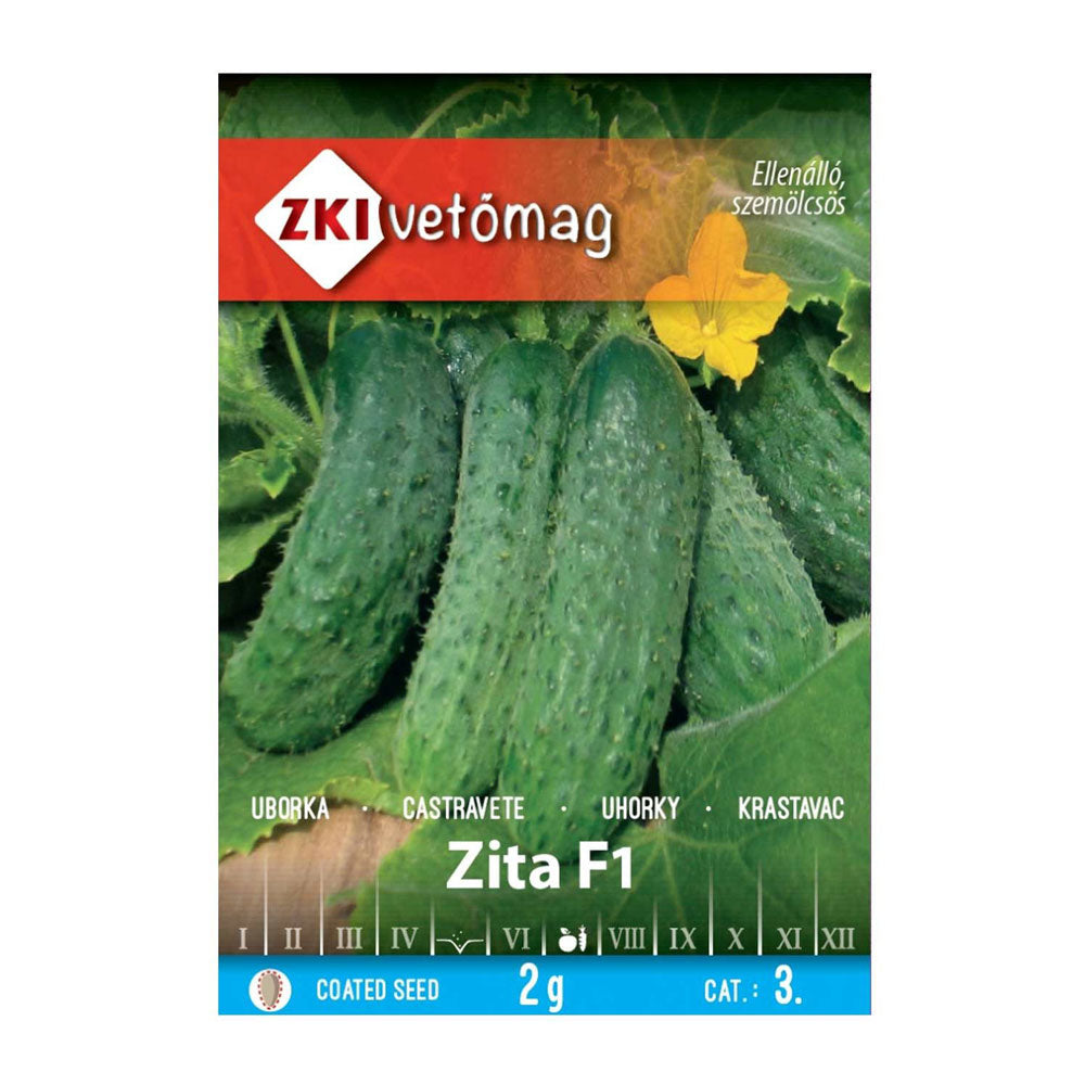 • Seminte Castraveti Zita F1 apartin unui hibrid timpuriu de castraveti, foarte rezistent la boli comune precum septorioza si tolerant la altele precum mana, fainare si virusul mozaic.